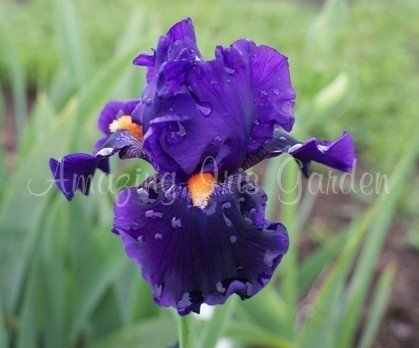 Dark purple standards. Velvety purple /black falls. Orange beards. Hybridizer, Black 1996..