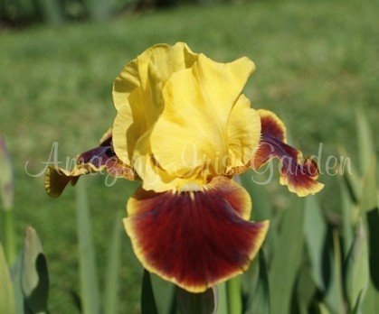 Standards deep chrome lemon. Falls garnet brown to algerian reed, narrow rim matching stds. Beards chrome lemon. Hybridizer, Gatty 1994..