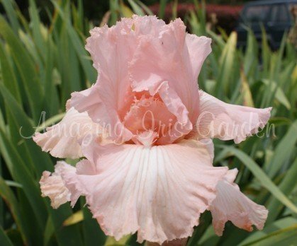 Mid clear pink self. Slightly ruffled pale pink beards, in throat darker tips. Hybridizer, C R Smith 1974.