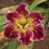 Wedgewood blue self with fine greenish-yellow line signal, a flush wine-red on the styles. Hybridizer, C Arny 1970.