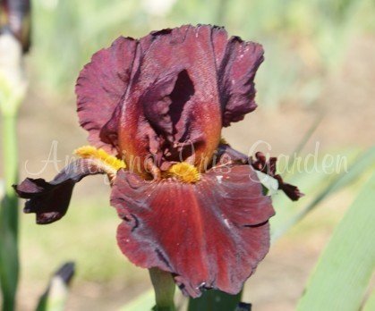 Copper/red self with velvet sheen. Gold beard. Hybridizer, Schreiner 1983.