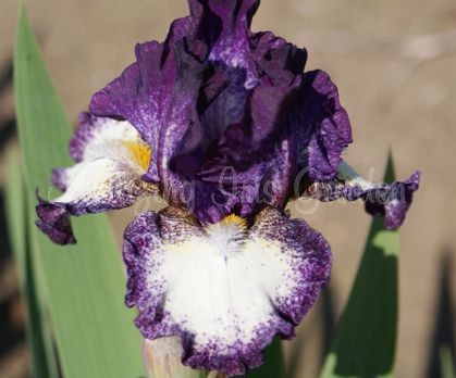 Vigorous burgundy, white plicata; B. white, tipped yellow. Niswonger 1993