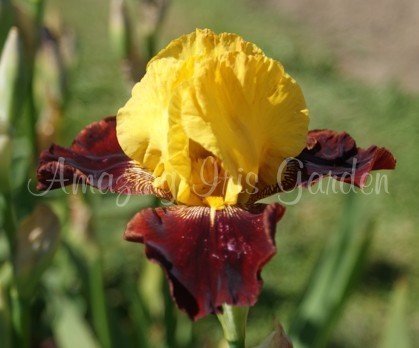 Standards golden yellow. Falls medium brick red. Gold beards. Hybridizer, Ernst 1987..