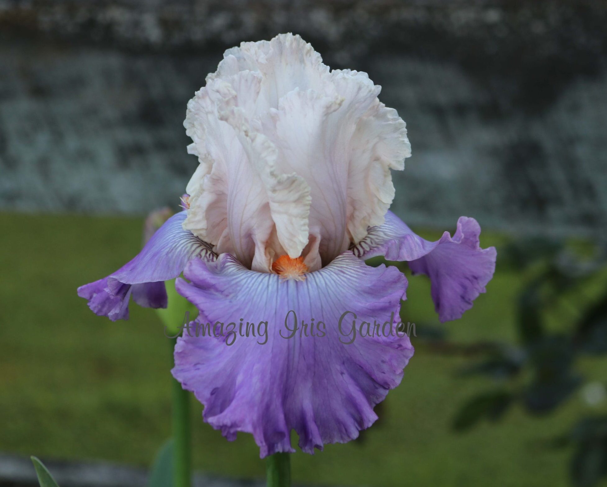 S. pale buff, with mauve blush. F. light blue-violet, with slight veining near beard, and whitening at throat. B. tangerine.