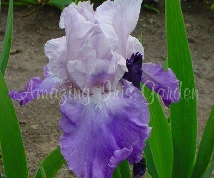 Lavender/pink standards. Lavender falls. White beard. Hybridizer, Sides 1994.