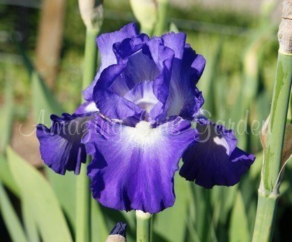 Rich velvet blue standards & falls. Falls have white zone around pale lemon beards. Hybridizer, M Dunn 1990.